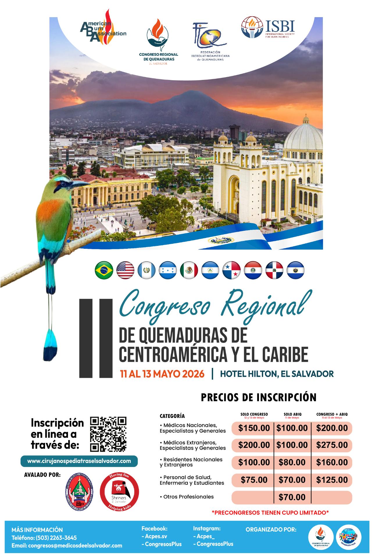 II Congreso Regional de Quemaduras de Centroamérica y El Caribe AFICHE DEL CONGRESO AFICHE DEL CONGRESO cerrar ENLACES DE ULTILIDAD ENLACES DE UTILIDAD cerrar Enlaces de Utilidad Médicos de El Salvador Congresos Plus